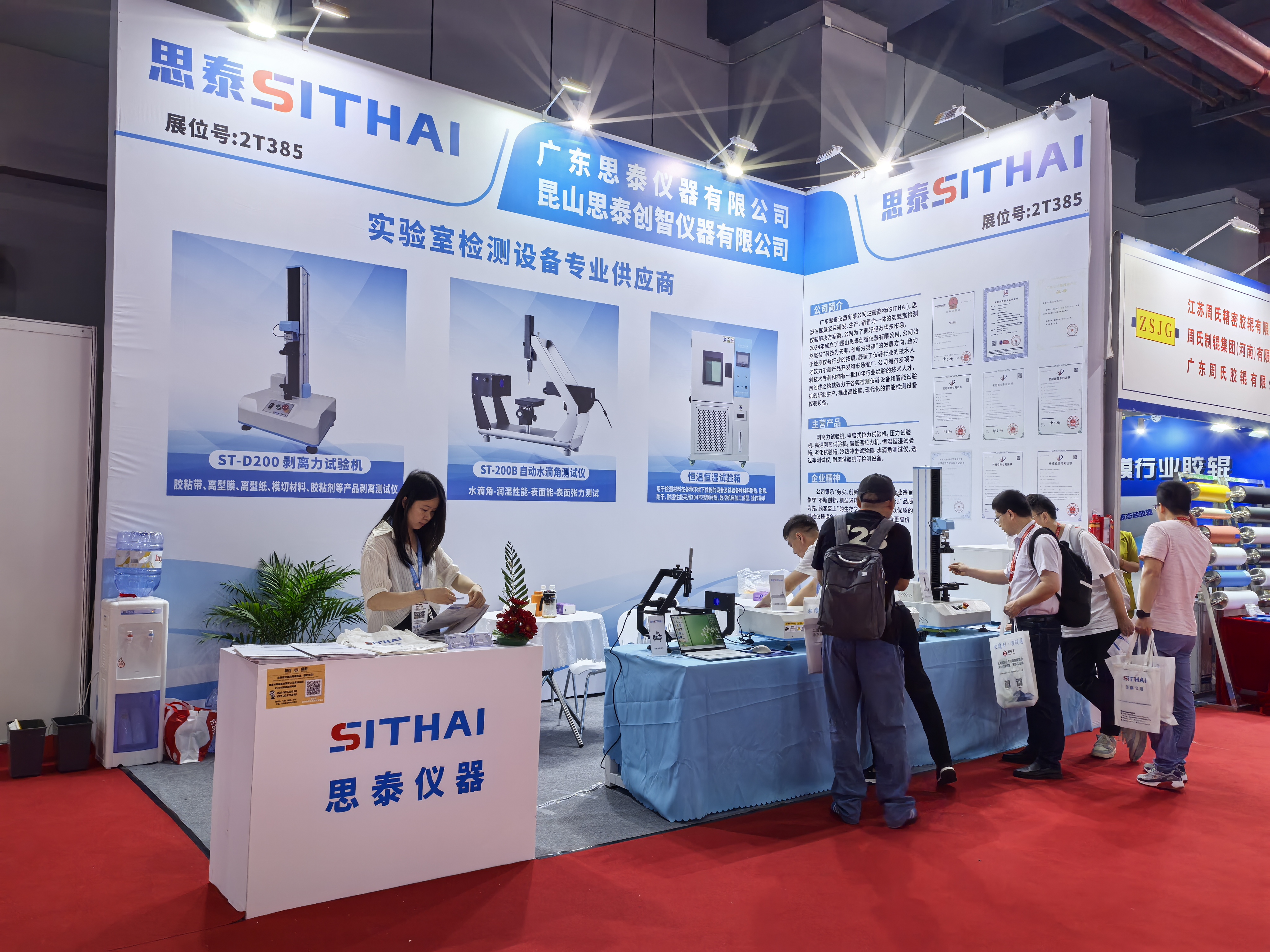 2024年第二十届上海国际胶带与薄膜展览会于6月3日-6月5日在上海国家会展中心圆满落幕,广东思泰仪器有限公司展位号:2T385,此次展览会展出产品有:拉力试验机,剥离力试验机,恒温恒湿试验箱,水滴角测试仪,高温烤箱等产品,吸引了众多来观展的客户前来咨询产品,展会现场人气火爆,使得思泰仪器胶粘带检测仪器得到充分的展示,并在于客户的现场沟通中我们不断的改进与创新发展,也感谢主办方给与我们在展会期间的支持与帮助。