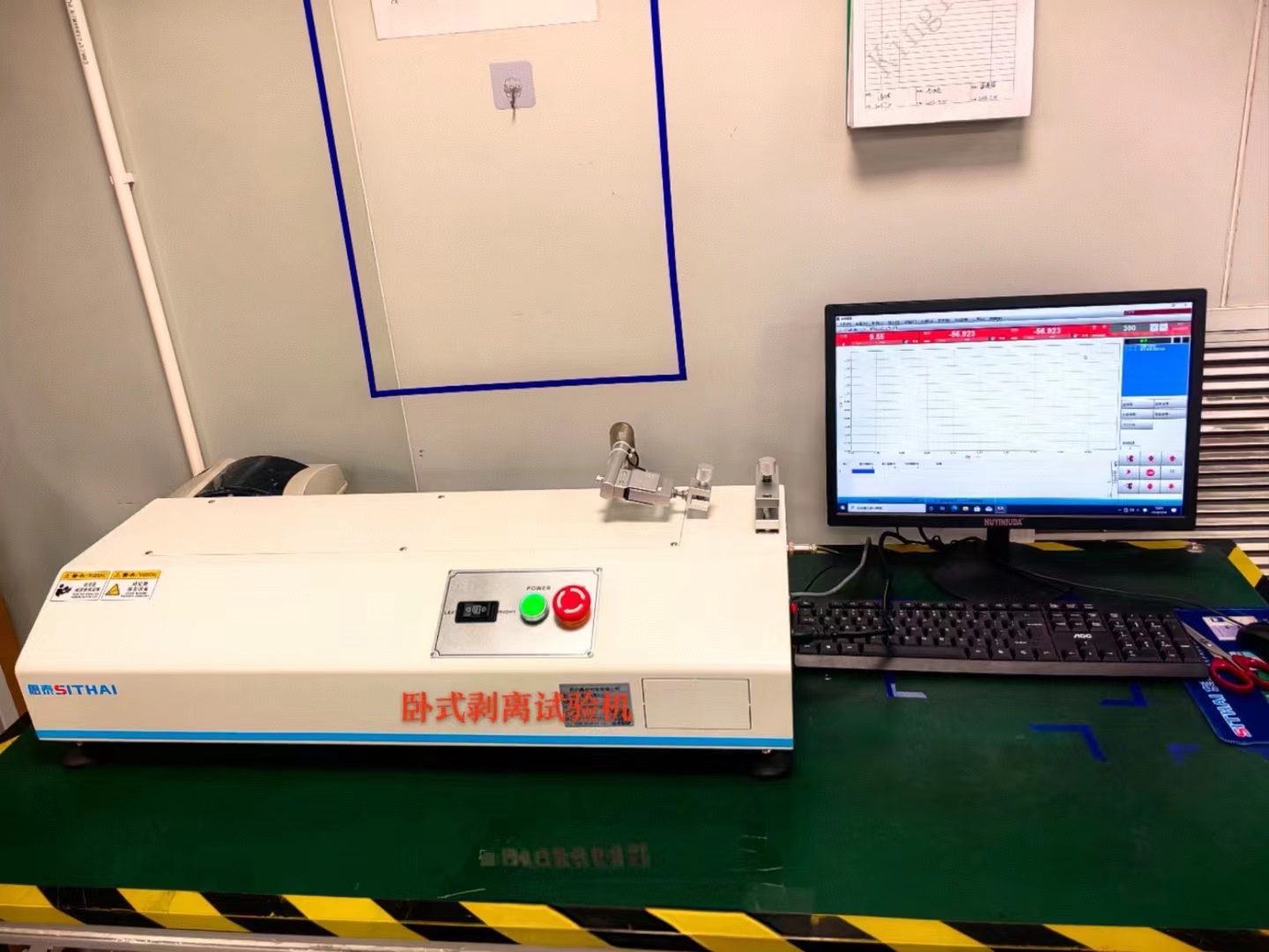 ST-D300载带剥离试验机走进苏州晶台光电有限公司,用于测试封装载带拉力测试,检查封装载带热封性能效果,为产品品质提供检测数据,保障产品质量符合标准,载带剥离试验机针对载带剥离试验而开发设计,用于载带上盖带剥离力的测试,通过拉力仪及其传动部分并配合软件将某一长度的载带上盖带各位置的剥离力生成剥离力与位移的曲线,并判断测试结果,采用微电脑芯片控制,可做材料料的拉力、剥离力测试,全电脑操作,自动复位功能,连接电脑可输出测试图形及表格资料作为材料测试之依据。
